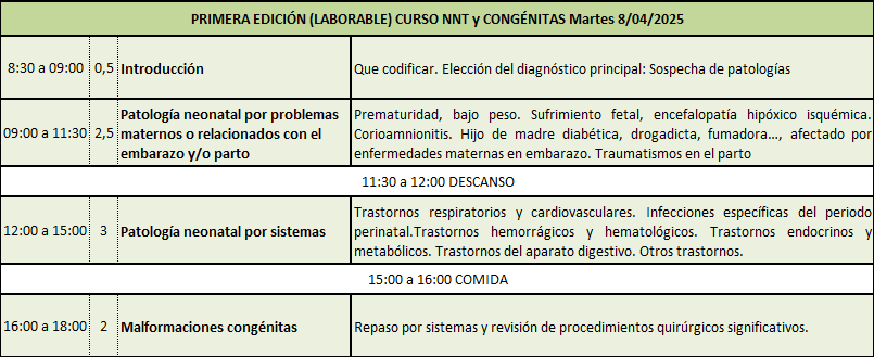Revisar la codificación de patología neonatal y congénita, así como de los procedimientos más frecuentes.